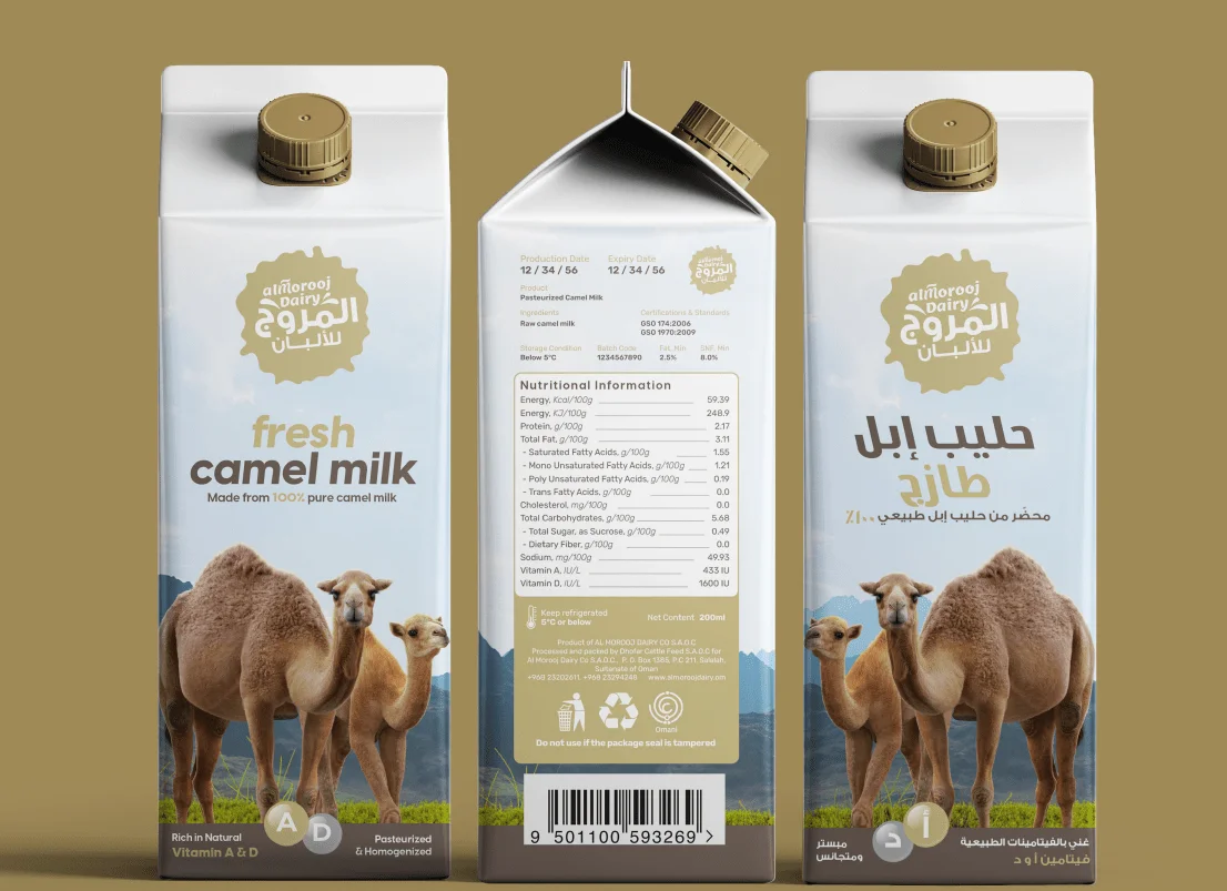 Established in 2016, Al Morooj Dairy Company is a closed joint company with a capital of 3.2 million Omani Riyal. Al Morooj is dedicated to the production of high quality, fresh pasteurized cow and camel milk from local livestock breeders in Dhofar governorate. The company implemented the first phase of the project by establishing (3) milk collection and cooling centers in: Salalah (Zeek, Hajif, Gedo) The company started initial operations of the project in January 2022